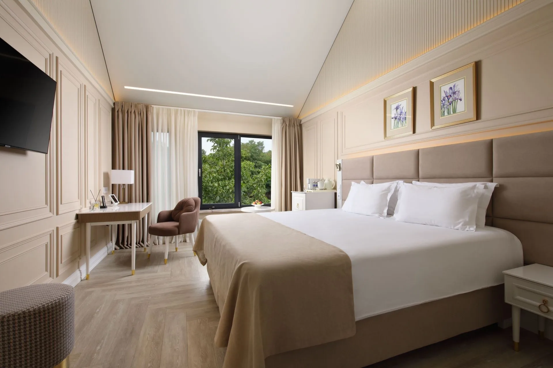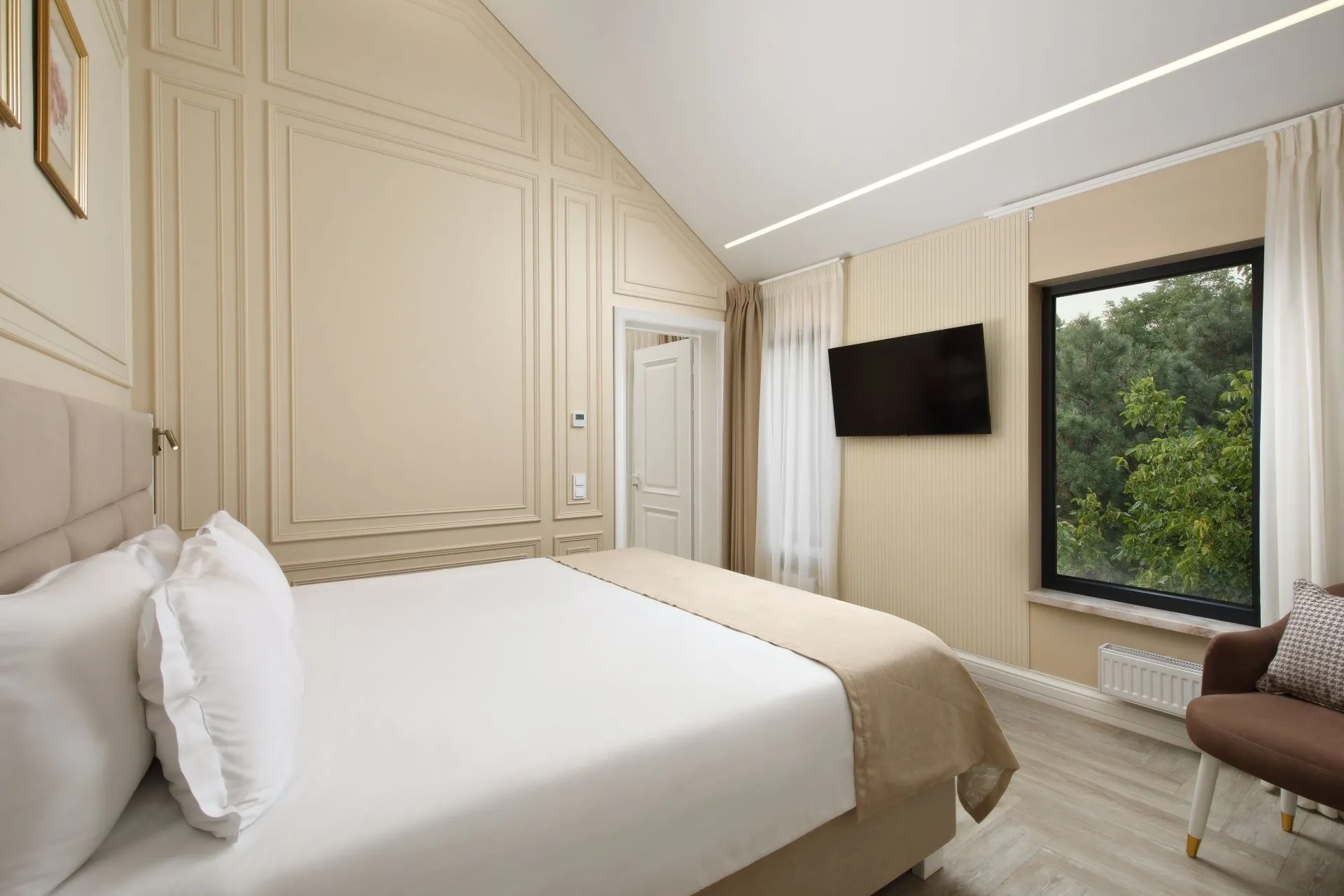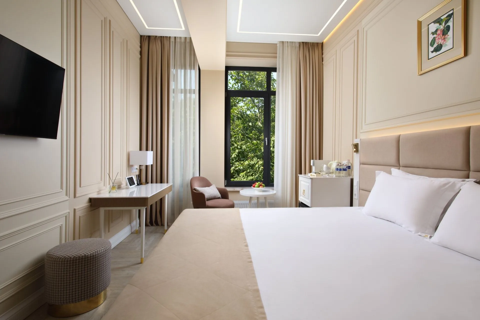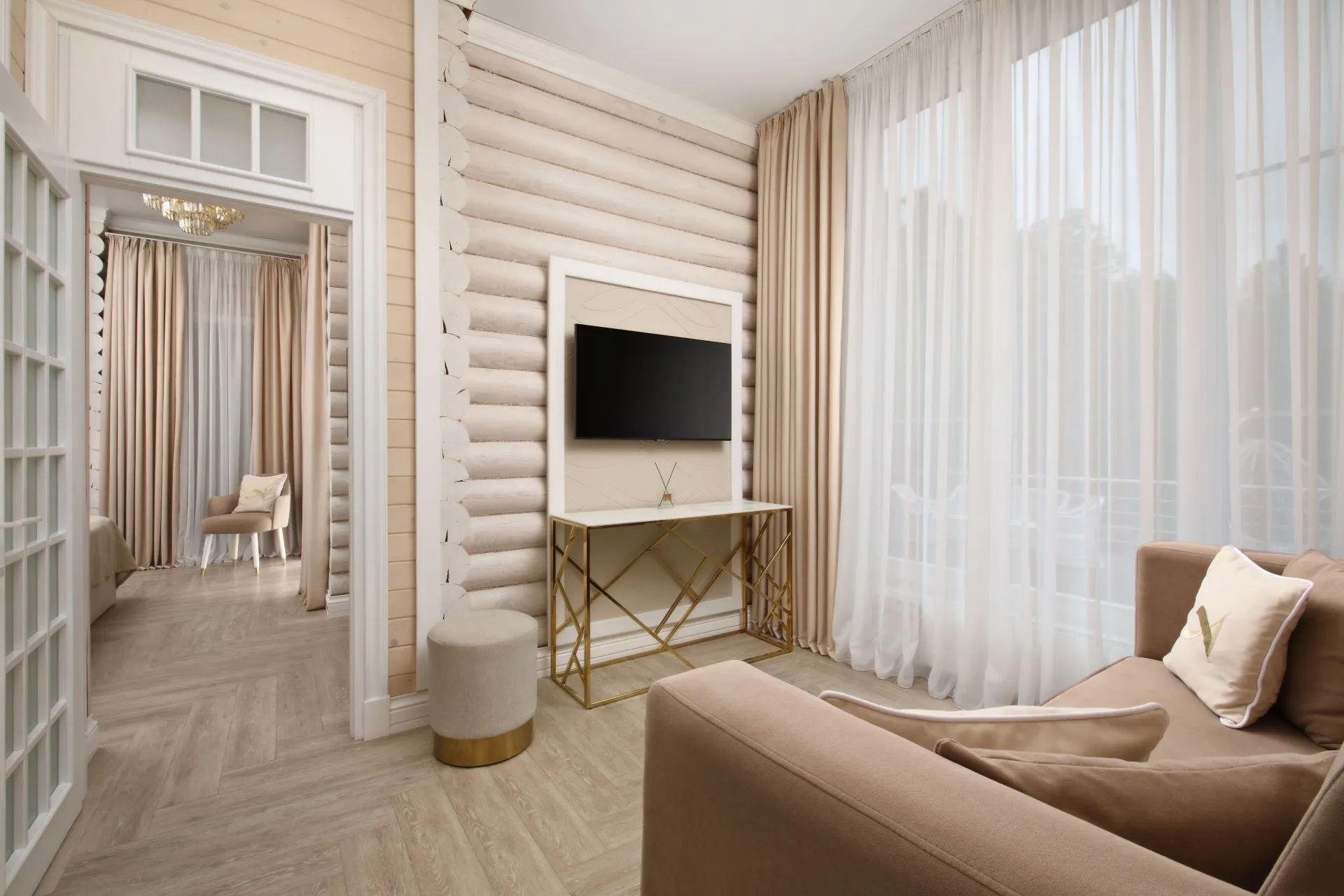 Идеальный выбор для тех, кто стремится к сочетанию бескомпромиссного комфорта с ноткой роскоши. Современная эстетика, эксклюзивные аксессуары, приятные тона и завораживающий вид на лес. Номер категории De Luxe — создан для взыскательных гостей, ценящих комфорт и удобство, простор и изысканность.